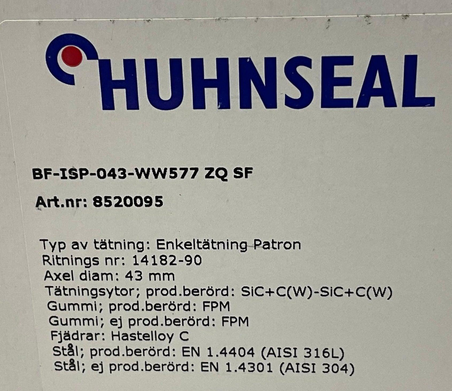 Huhnseal Double Cartridge Seal BF-ISP-043-WW577 ZQ SF