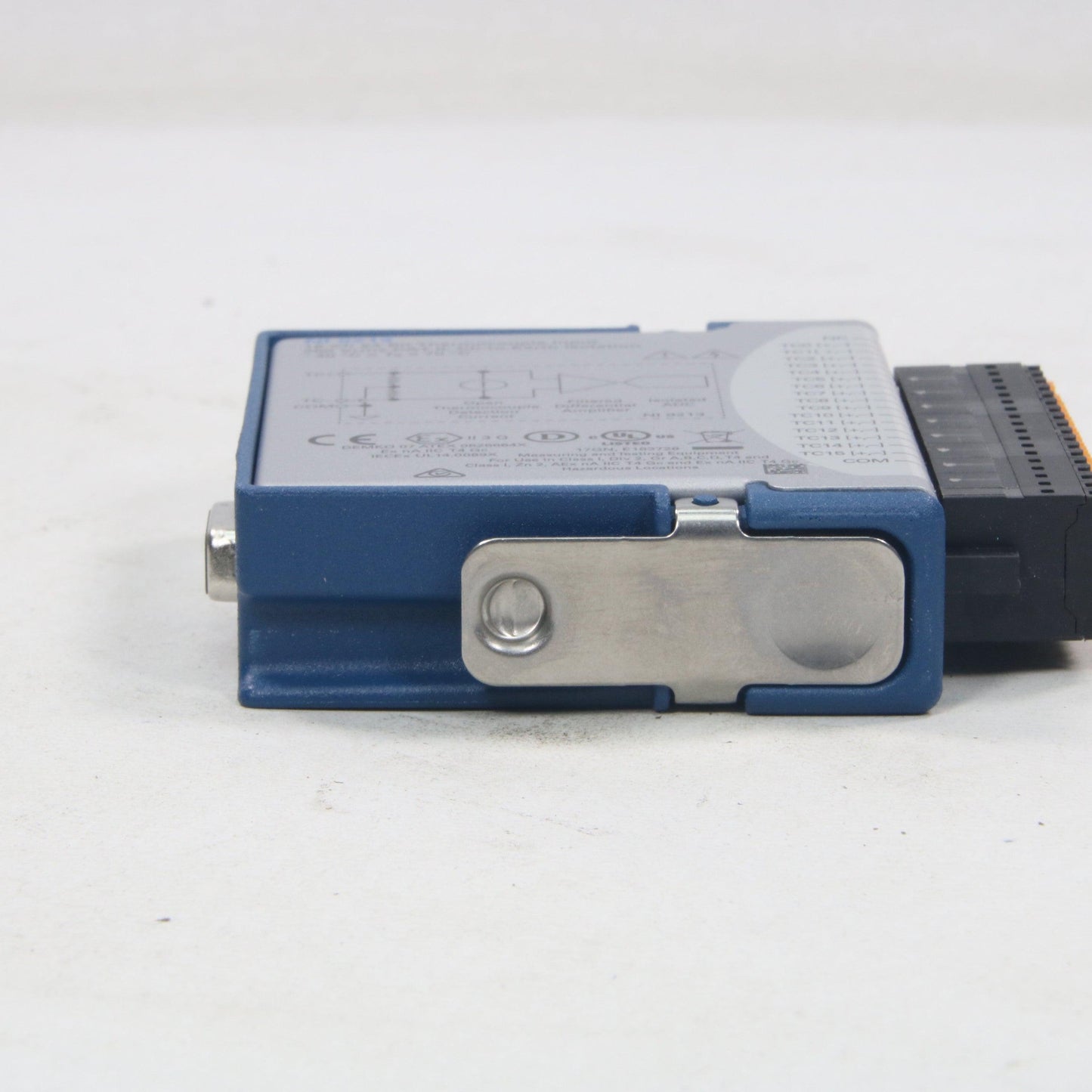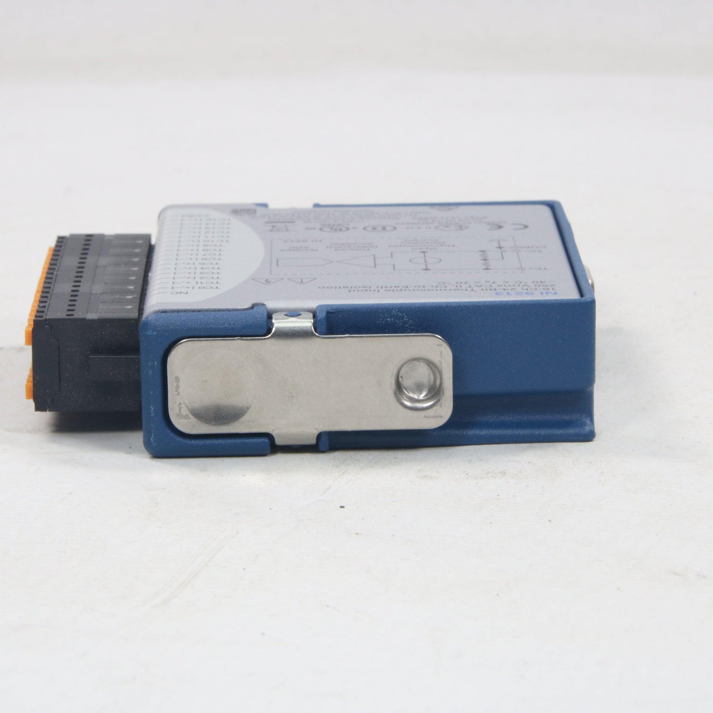 The NI‑9213 is a high-density thermocouple input module that is designed for higher channel count systems. With this module, you can add thermocouples to mixed-signal test systems without taking up too many slots. The NI‑9213 includes anti-aliasing filters, open-thermocouple detection, and cold-junction compensation for high-accuracy thermocouple measurements. The NI‑9213 features NIST‑traceable calibration and a channel‑to‑earth ground double isolation barrier for safety, noise immunity, and high common-mode voltage range.