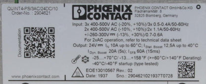 Phoenix Contact QUINT4-PS/3AC/24DC/10 Power Supply