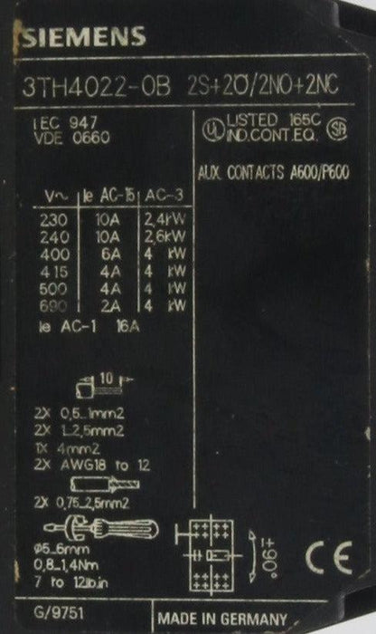 Siemens Contactor Relay 3TH4022-0B