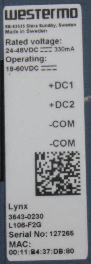 - The Lynx 106-F2G is a layer 2 industrial Ethernet switch, powered by the Westermo WeOS network operating system. Lynx is the most compact and has the lowest power requirements in this class of switch. Lynx 106-F2G has 4 10/100Mbit/s ports in addition to 2 ports which can be fitted with Gbit or 100 Mbit SFP transceivers.